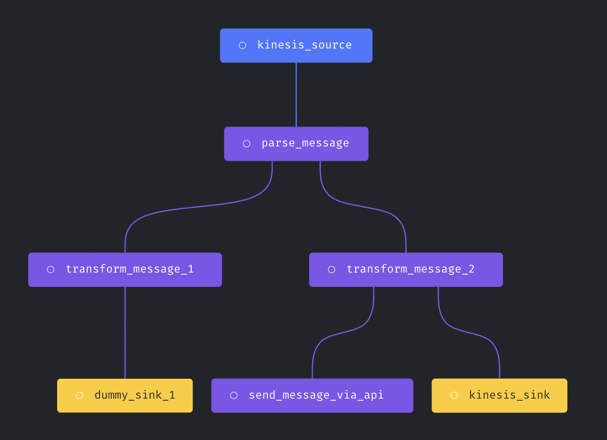 Each streaming pipeline has three components:- Source: The data stream source to consume message from.